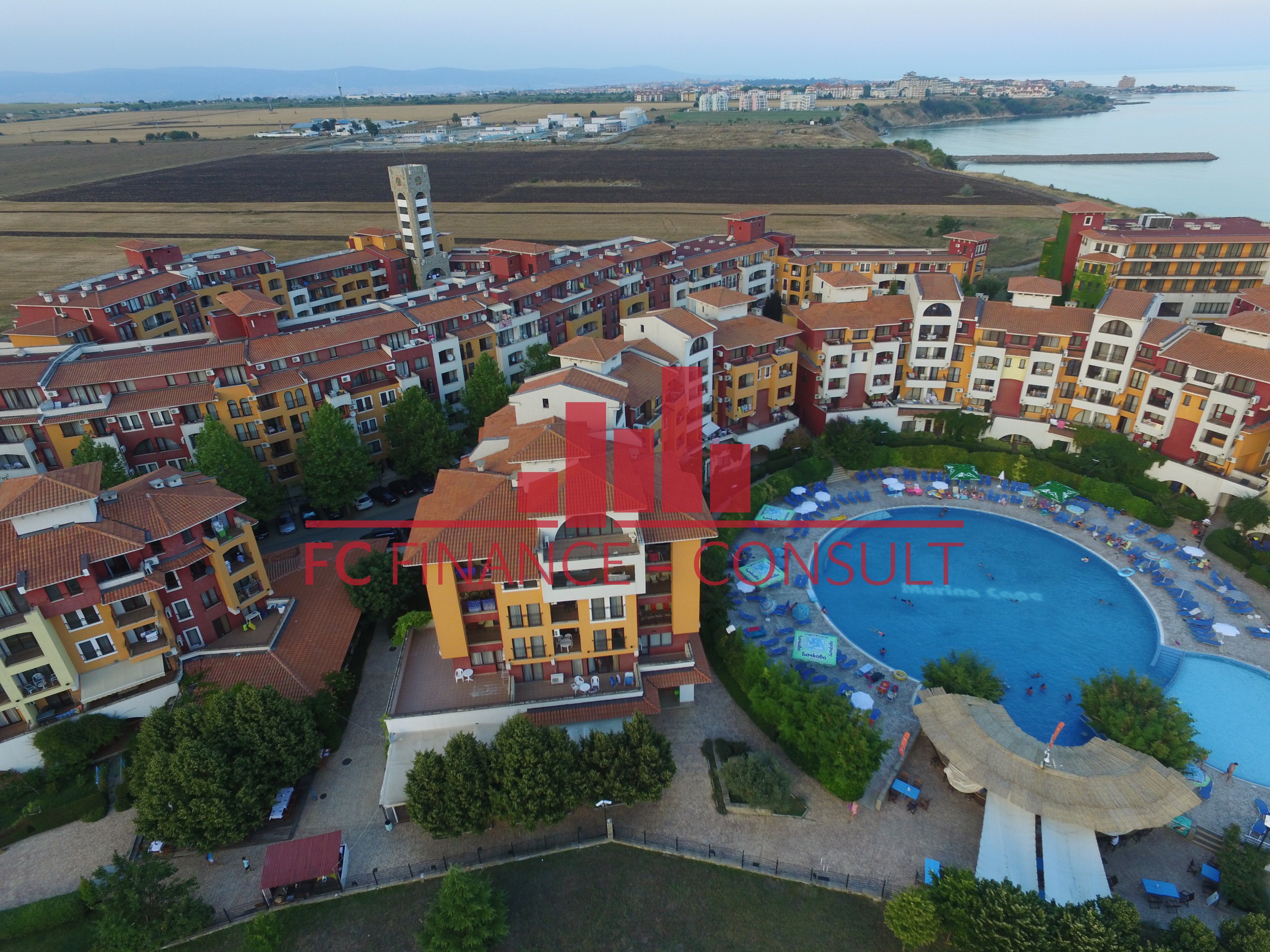Dwupokojowy apartament 61m2 z częściowym widokiem na morze i dużym tarasem w kompleksie Marina cape, który znajduje się na pierwszej linii morza w malowniczym kurorcie Aheloy. Kompleks oferuje nowoczesną bogatą infrastrukturę i ogrody krajobrazowe. Świetna opcja na wakacje latem, mieszkanie przez cały rok lub wynajem. • Typ nieruchomości: dwupokojowy apartament • Rozkład: przedpokój, pokój dzienny z aneksem kuchennym, sypialnia, łazienka z WC, balkon • Rozmiar: 61 m2 • Widok: ogród, morze • Odległość do plaży: 10 metrów • Parking: na terenie kompleksu, na ulicy • Opłata za utrzymanie części wspólnych: 12 euro/m2/rok • Możliwość rozłożenia tej nieruchomości na raty do 5 lat: nie • Minimalna wymagana wpłata zaliczki: 100% • Opłata rezerwacyjna: 2000 euro • Możliwość rocznego zwrotu z inwestycji: tak • Kompleks oferuje ponadto: recepcja; baseny, w tym basen dla dzieci; restaurację z kuchnią bułgarską/europejską; sklepy spożywcze i akcesoria plażowe; sprzęt fitness na świeżym powietrzu; fitness w pomieszczeniach; sauna; spa; klub dla dzieci; gabinet masażu; centrum zdrowia; wypożyczalnia samochodów; place zabaw dla dzieci i place sportowe; parking bezpłatny a parking strzeżony; squash; bilard i tenis stołowy; biuro podróży; łaźnia turecka.