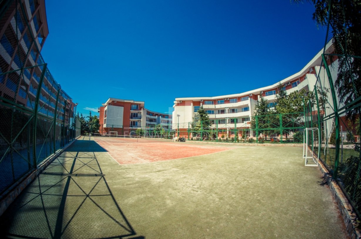 Przestronne studio 47,07m2 w kompleksie Privilege, który znajduje się na pierwszej linii morza w malowniczym kurorcie Elenite. Kompleks oferuje nowoczesną bogatą infrastrukturę i ogrody krajobrazowe. • Typ nieruchomości: studio • Rozkład: przedpokój, pokój dzienny z aneksem kuchennym, łazienka z WC, balkon • Rozmiar: 47,07 m2 • Widok: ogród • Odległość do plaży: 10 metrów • Parking: tak, na terenie kompleksu, na ulicy • Opłata za utrzymanie części wspólnych: 14,50 euro/m2/rok • Możliwość rozłożenia tej nieruchomości na raty do 7 lat: tak • Minimalna wymagana wpłata zaliczki: 30% • Opłata rezerwacyjna: 2000 euro • Możliwość rocznego zwrotu z inwestycji: tak • Kompleks oferuje ponadto: recepcja; baseny, w tym basen dla dzieci; restaurację z kuchnią bułgarską/europejską; sklepy spożywcze i akcesoria plażowe; sprzęt fitness na świeżym powietrzu; fitness w pomieszczeniach; sauna; spa; wypożyczalnia rowerów; gabinet masażu; centrum zdrowia; kantor wymiany walut; wypożyczalnia samochodów; place zabaw dla dzieci i place sportowe; parking bezpłatny i niestrzeżony; parking strzeżony; kort tenisowy.